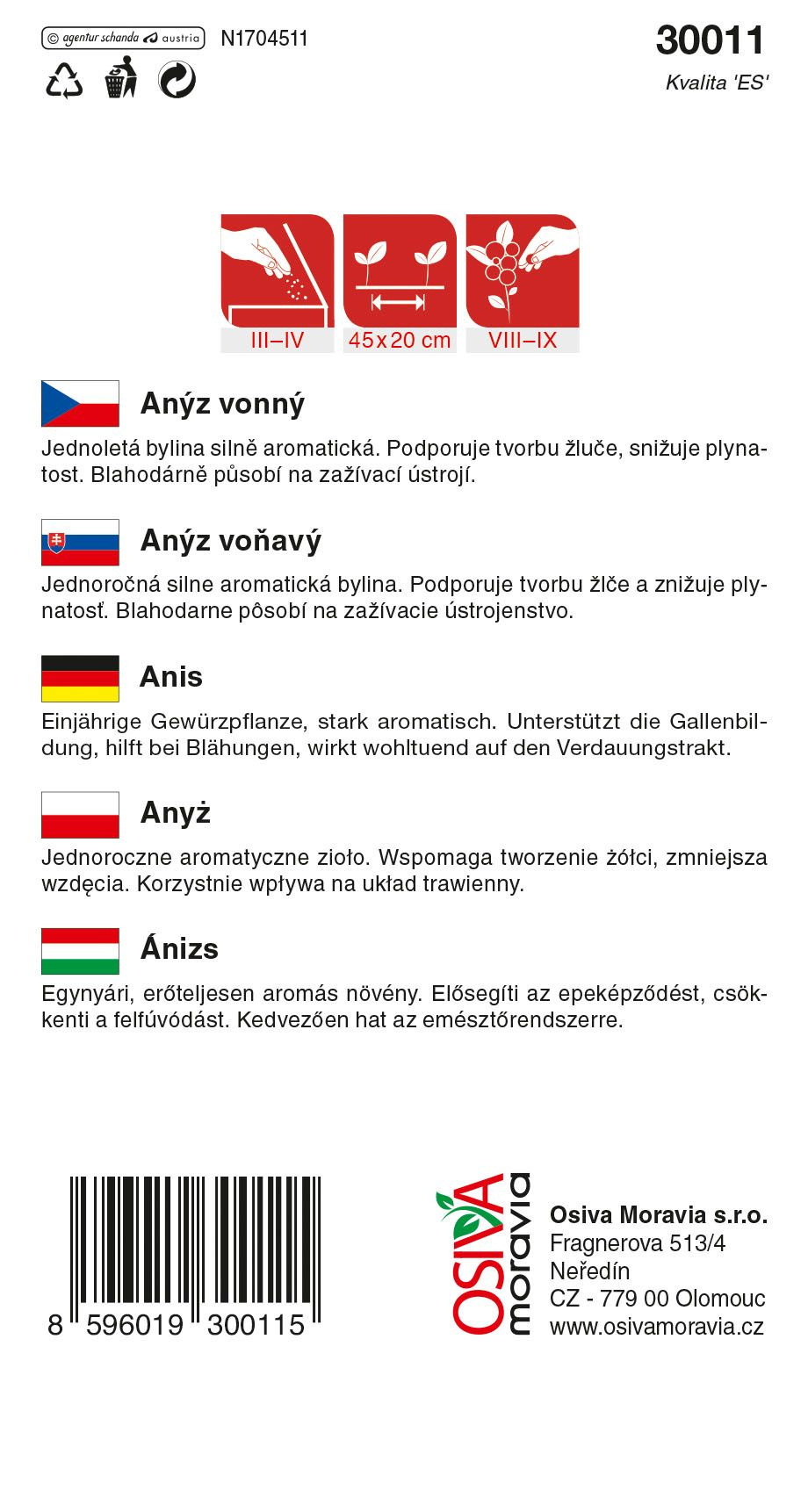 Tagy : anýz obecný, Osiva Moravia, bylinky, aromatické rostliny, semena, zahradnictví, domácí pěstování, přírodní léčba, trávicí vlastnosti, kuchyňské bylinky, pěstování, výsadba bylinek, sběr a úroda, ekologické pěstování