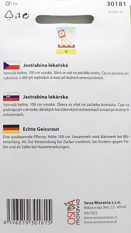 Tagy : jestřabina, lékařská, semena, pěstování, zahradnictví, léčivé rostliny, Osiva Moravia