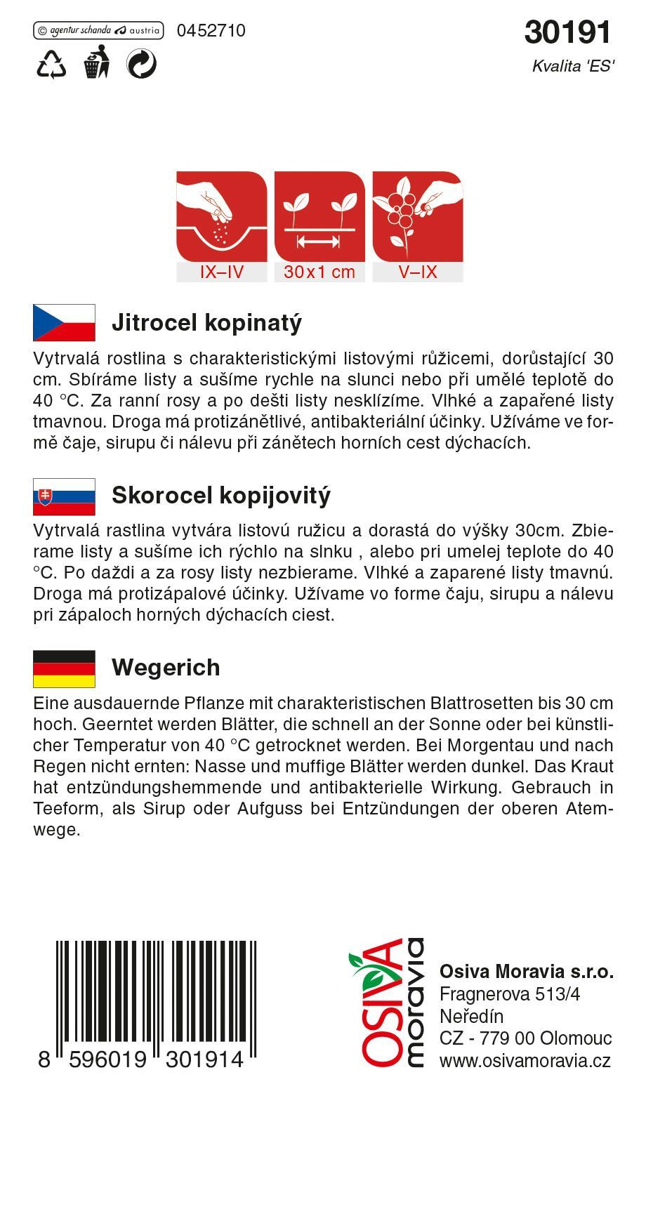 Tagy : jitrocel, kopinatý, semena, pěstování, léčivé rostliny, zahradnictví, Osiva Moravia