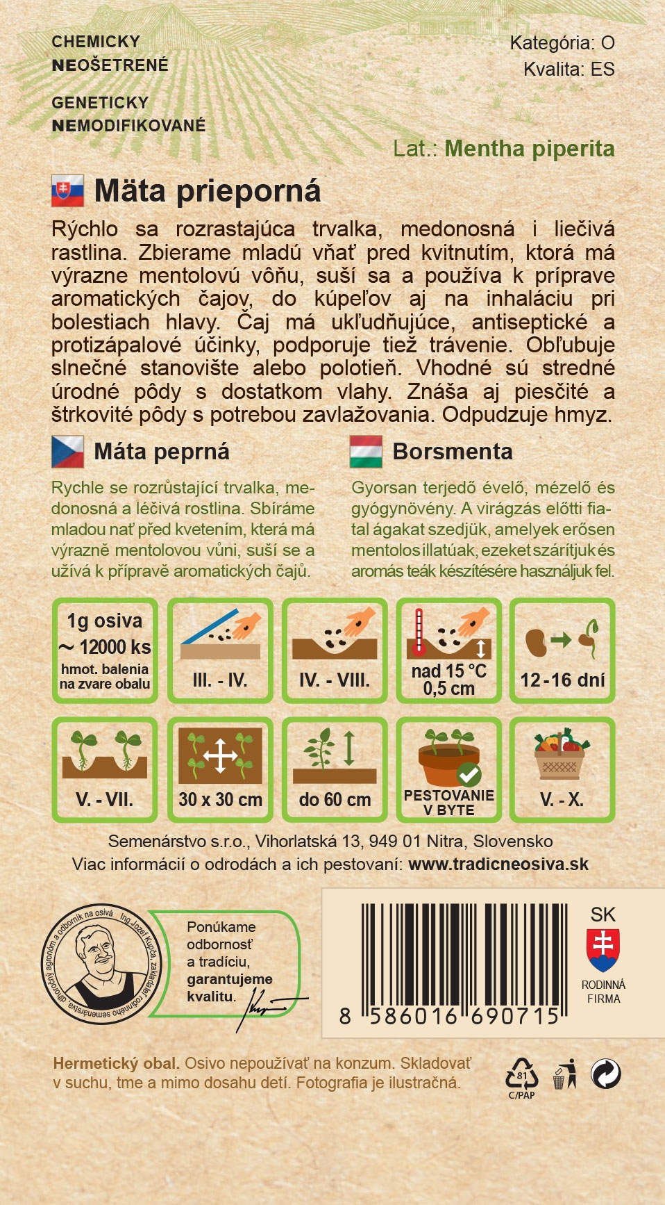 Tagy : semeno, semínko, osivo, semena, bylinky, bylinka, léčivka, léčivá rostlina, léčivé rostliny, máta, máta peprná, máta peprmintová