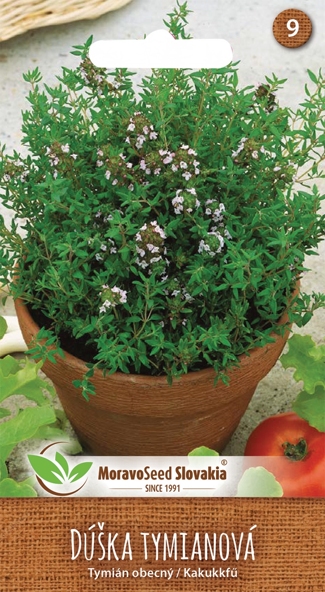 Dúška tymiánová, známa aj ako tymián, je nízky, rozvetvený poloker s aromatickou vňaťou. Je nenáročná na pestovanie a vhodná na slnečné stanovištia s priepustnou pôdou. Zberáme vňať na začiatku kvitnutia a sušíme ju pri teplote do 35 °C. Tymián je obľúbený ako korenina do polievok, omáčok, údenín a rýb. Má priaznivé účinky na trávenie a podporuje imunitný systém.