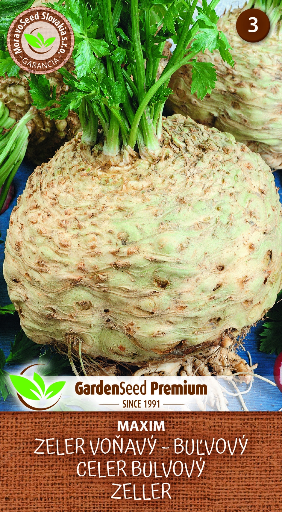 Celer vonný – bulvový – MAXIM je odrůda celeru známá svou velkou, sladkou a křupavou bulvou. Bulva je bílá, s hladkým povrchem, listy jsou tmavě zelené a aromatické. Tato odrůda má jemnou, sladkou chuť a je bohatým zdrojem vitamínů (A, B1, B2, B3, B6, B9, C, E, K), minerálů (vápník, hořčík, železo, zinek, selen) a vlákniny. Je nenáročná na pěstování a lze ji vysazovat na jaře nebo na podzim do propustné půdy. Ideální je slunné nebo mírně zastíněné stanoviště. Celer dosahuje výšky 20 až 40 cm a je všestranně využitelný v kuchyni – čerstvý do salátů a polévek, vařený či pečený jako příloha nebo základ různých jídel.