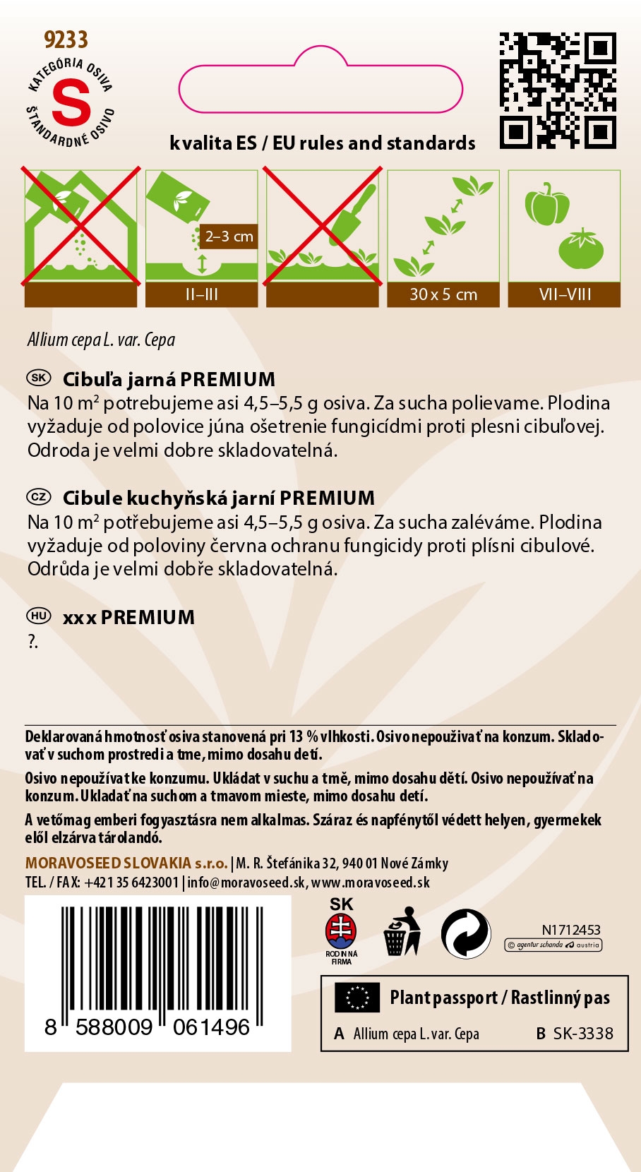 Cibule jarní Premium Klaria, známá také pod názvem Klaria, je odrůda vhodná pro jarní pěstování. Vysévá se na záhony s průměrným výsevem 4,5–5,5 g osiva na m². Tato odrůda vyžaduje pravidelnou zálivku během suchých období a ochranu proti plísni cibulové pomocí fungicidů od poloviny června. Cibule Premium Klaria je velmi dobře skladovatelná a ideální pro dlouhodobé skladování.
