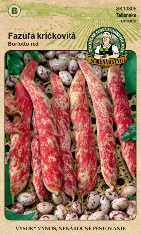 Fazol keříčkový Borlotto red je italská výnosná odrůda keříčkového fazolu určená k sušení na semena. Rostliny dosahují výšky 50 - 60 cm a kvetou bílými nebo červenými květy. Lusky jsou dlouhé 12 - 14 cm a obsahují průměrně 6 semen. Typickým znakem této odrůdy jsou barevné lusky a semena s nepravidelnými červenými skvrnami na světlém podkladu. Tato unikátní barevná kombinace dodává pokrmům jedinečný vzhled a charakter. Odrůda je nenáročná na pěstování a může sloužit i jako dekorativní prvek v zahradě. Rostliny jsou citlivé na pozdní jarní mrazíky a vyžadují slunné, chráněné stanoviště.