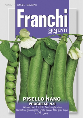 Hrách nízký PROGRESS N.9 je raná odrůda nižšího vzrůstu, dosahující výšky přibližně 40 cm. Lusky jsou dlouhé 10–11 cm a obsahují jasně zelená, sladká zrna. Tato odrůda je ideální pro mražení, přímou konzumaci a jako nepostradatelná součást mnoha pokrmů. Vyniká svou sladkou chutí a snadným pěstováním.