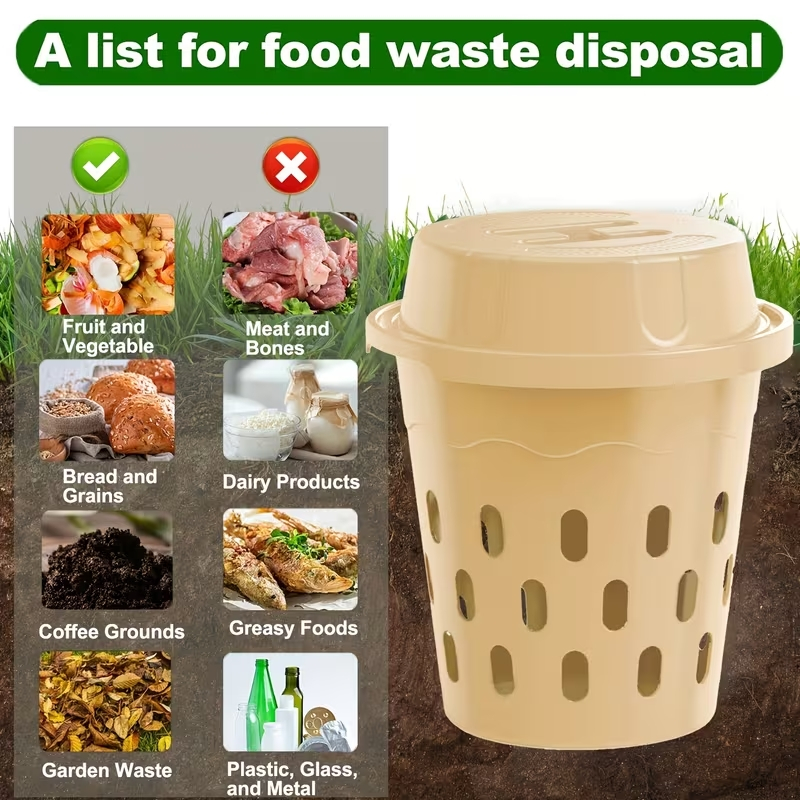 Tagy : kompostér, vermikompostér, podzemní kompostér, zahradní kompostér, zpracování bioodpadu, hnojivo, bio zahrada, ekologické pěstování, žížaly, kuchyňský odpad, kompostování v záhonu, udržitelnost, zahradní doplňky, výživa půdy, recyklace.