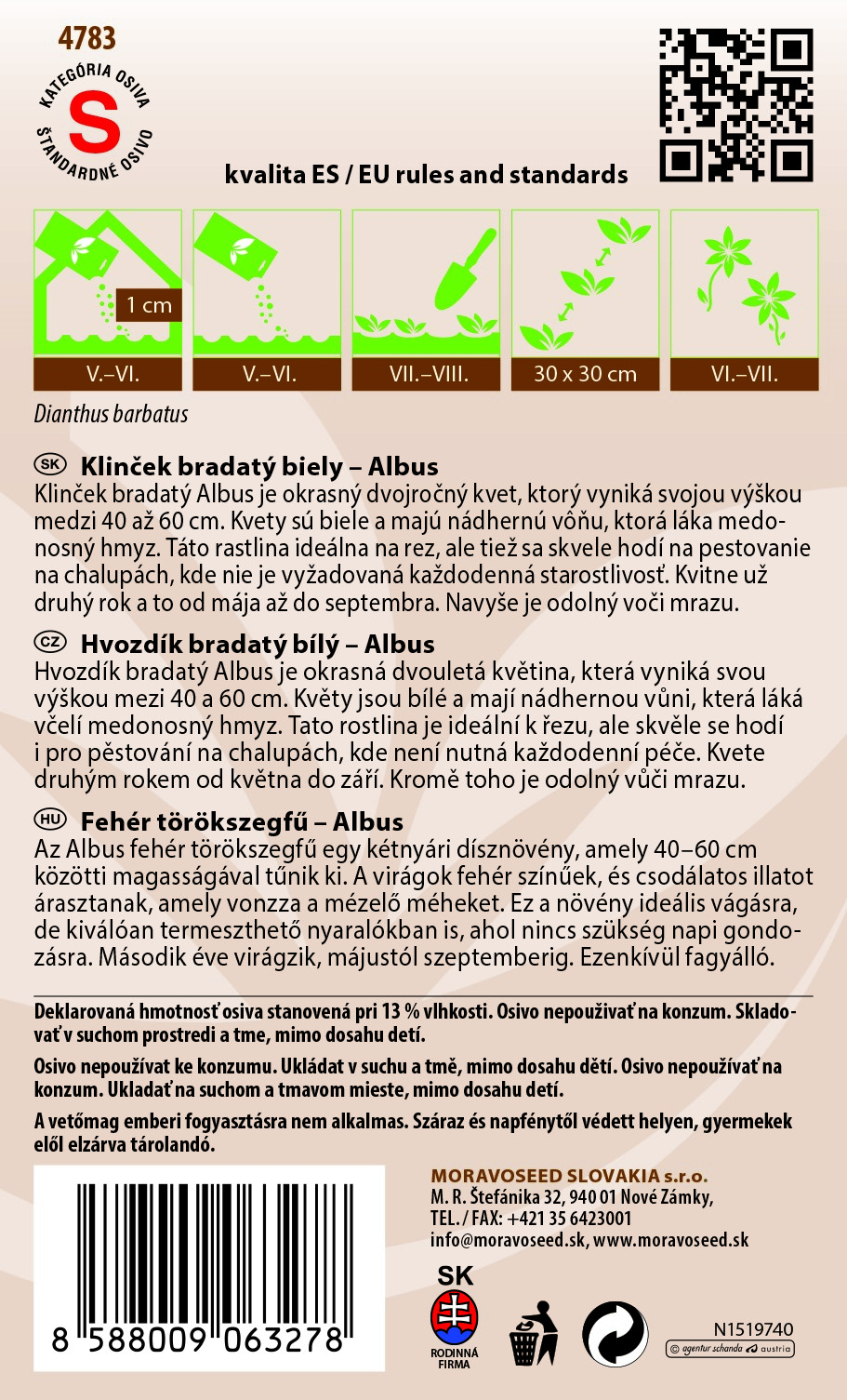Hvozdík bradatý Albus - 500 mg - MoravoSeed