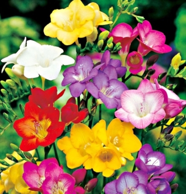 Frézie jsou teplomilné rostliny známé svými voňavými a jasně barevnými květy v široké paletě barev. Mají zajímavý tvar a jsou velmi dekorativní jak v záhonech, tak i ve váze. Sází se od dubna do května do hloubky 6–8 cm. Hlízy připomínají malé cibulky a jsou citlivé na mráz, proto je vhodné je pěstovat v nádobách nebo na podzim vyjmout ze země. Rostliny dorůstají do výšky 40–45 cm a kvetou od června do srpna. Květy jsou ideální k řezu a dlouho vydrží ve váze.