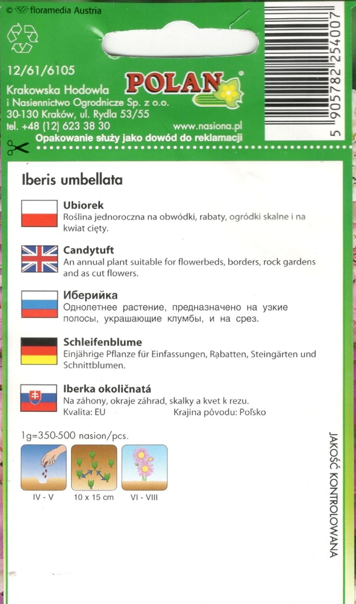 Tagy : iberka, iberka okolíkatá, Iberis umbellata, letničky, osivo, semena květin, medonosné rostliny, včely v zahradě, rychlerostoucí květiny, nízké letničky, skalky, obruby záhonů, kvetoucí koberec, nenáročné květiny, směs barev, jarní výsev