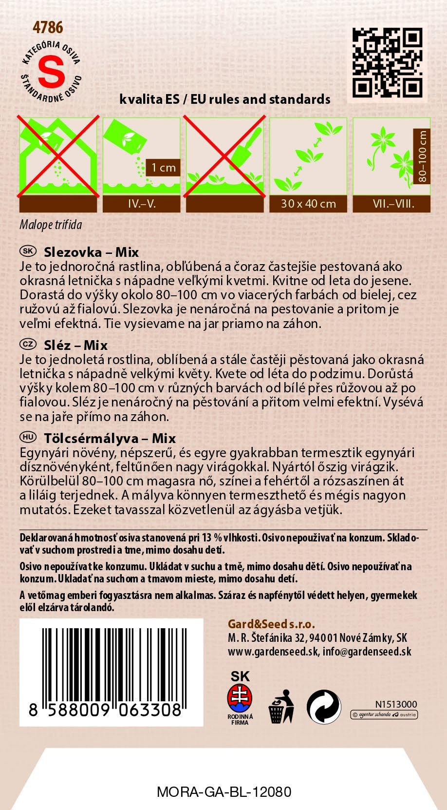 Tagy : slezovka, slezovka trojzárezová, Malope trifida, okrasná letnička, semená kvetov, vysoké letničky, vidiecka záhrada, pestrofarebná zmes, nenáročné kvety, letný záhon, kvety na rez, biele kvety, ružové kvety, fialové kvety, rýchlorastúce rastliny