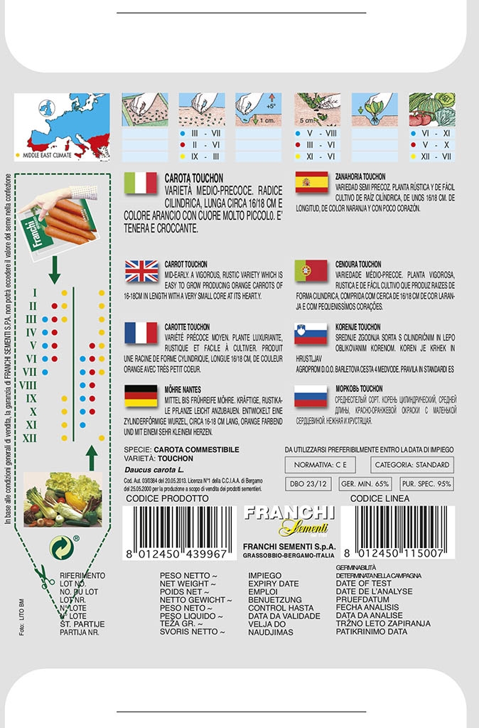 TOUCHON patří mezi oblíbené historické nanteské odrůdy – pěstitelé oceňují rovnoměrnost kořenů a stabilně sladkou chuť v různých půdních podmínkách.