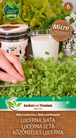Mikrozelina vojtěška setá (alfalfa) s jemně oříškovou chutí a křupavou texturou. Spolehlivě klíčí a ke sklizni je připravená už za 7–12 dní od výsevu. Ideální do salátů, sendvičů, wrapů i smoothie. Pěstovat ji můžete celoročně doma – na parapetu, v misce nebo mikro pěstírně.