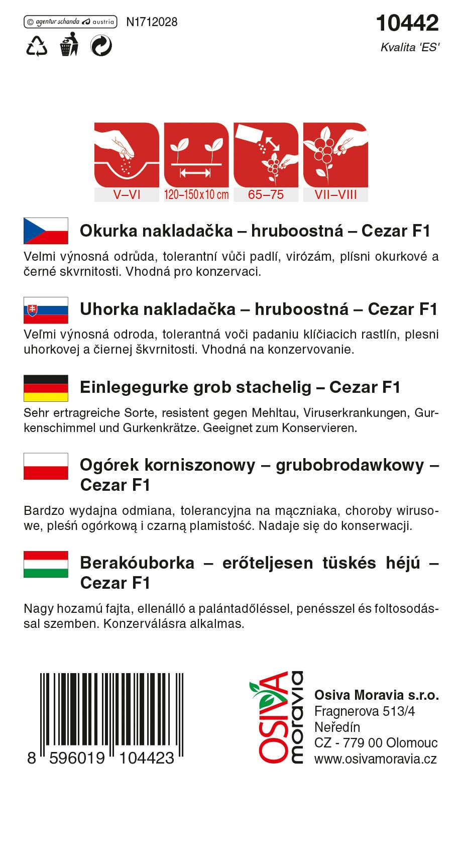 Okurka nakládačka CEZAR F1 - 1 g - Osiva Moravia