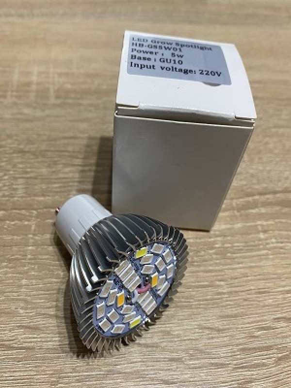 Profesionálna LED Grow žiarovka s päticou GU10 a výkonom 5 W. Je vhodná pre každého záhradkára. Veľkou výhodou je malá spotreba elektrickej energie a zároveň jej vysoká svetelná účinnosť. Rastliny, ktorým prisvecujeme touto špeciálnou LED technológiou, sú zdravšie, silnejšie, ich koreňová sústava a celková sila je výrazne lepšia ako pri štandardne pestovaných priesadách. Fotosyntéza pri takto pestovaných rastlinách prebieha dlhšie, čo priaznivo pôsobí na rast a kondíciu rastlín.