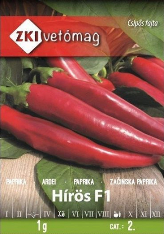 Paprika Híros F1 je visící pálivá odrůda s tupými konci plodů. Plody dosahují délky 16 – 18 cm a po dozrání získávají zářivě červenou barvu. Odrůda je odolná vůči chorobám a je vhodná pro pěstování přímým výsevem nebo z předpěstovaných sazenic. Paprika Híros F1 je ideální pro výrobu pálivé pasty a dochucování jídel.