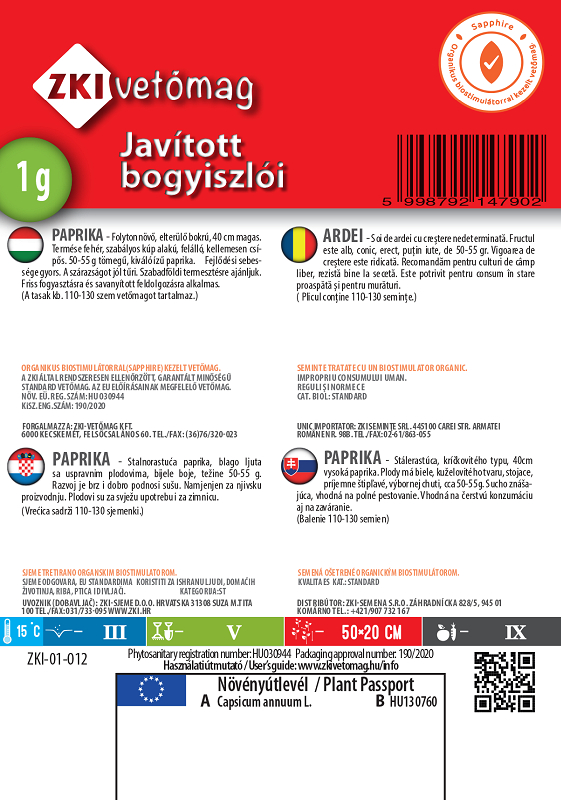 Paprika Javított bogyiszolói je oblíbenou odrůdou pro svou odolnost a univerzální využití. Je ideální pro pěstování v podmínkách s omezenou zálivkou.