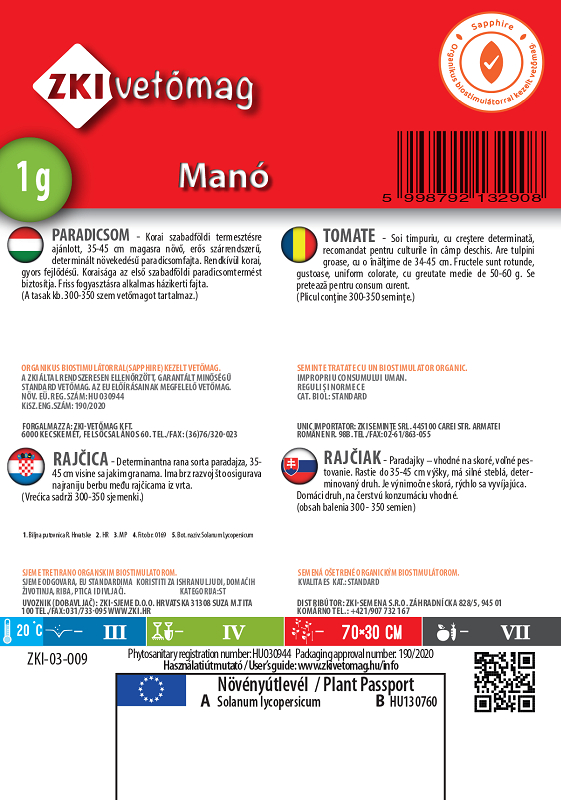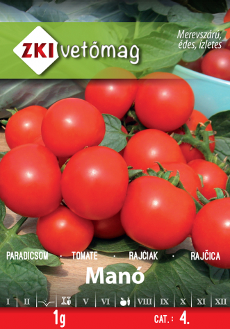 RAJČE - Rajčata MANÓ jsou vhodná pro rané volné pěstování. Rostliny dosahují výšky 35 – 45 cm, mají silné stonky a patří mezi determinované druhy. Jde o výjimečně ranou odrůdu, která se rychle vyvíjí. Je to domácí odrůda, ideální pro čerstvou konzumaci.