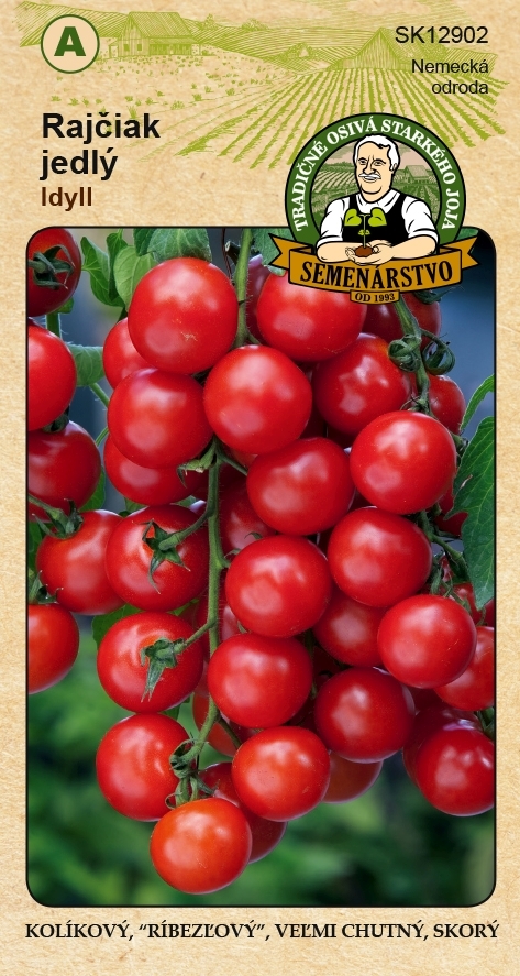 Rajče Idyll je raná vysoká (tyčková) velmi oblíbená odrůda bulharské produkce typu cherry rajčat, vhodná pro pěstování na poli. Je odolná vůči chorobám (tabáková mozaika, verticillium a fusarium). Velké plody mají hmotnost 200 – 250 gramů, jsou růžové, tvarem připomínají srdce a slabý zelený límec mizí při dozrávání. Slupka je jemná. Plody mají vynikající chuť a konzistenci, kompaktní dužninu a malý obsah semen. Jsou ideální pro přímou konzumaci, kuchyňské zpracování a přípravu šťáv. Skladovatelnost je dobrá.