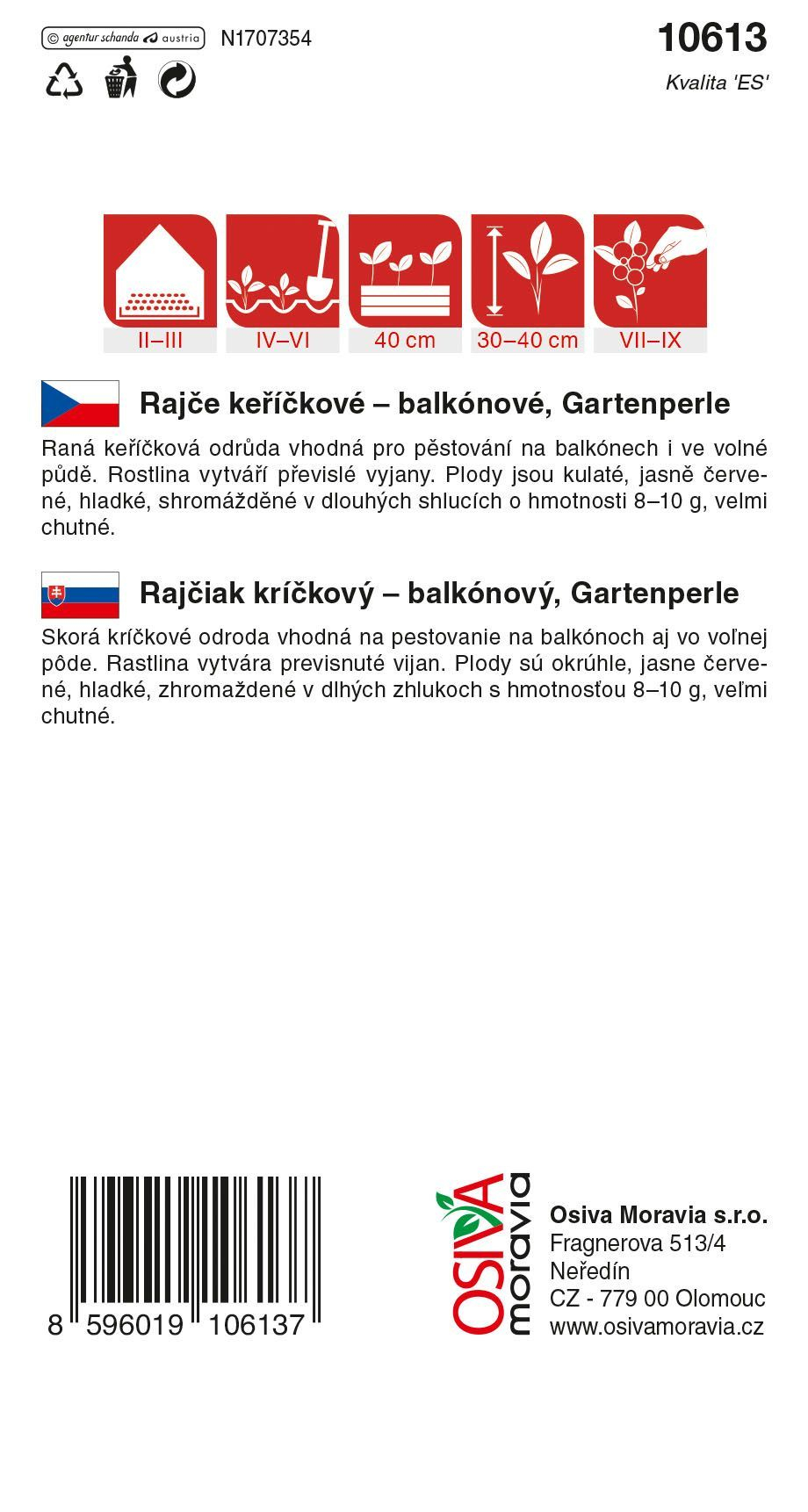 Latinský název: Solanum lycopersicum var. cerasiforme 'Gartenperle'