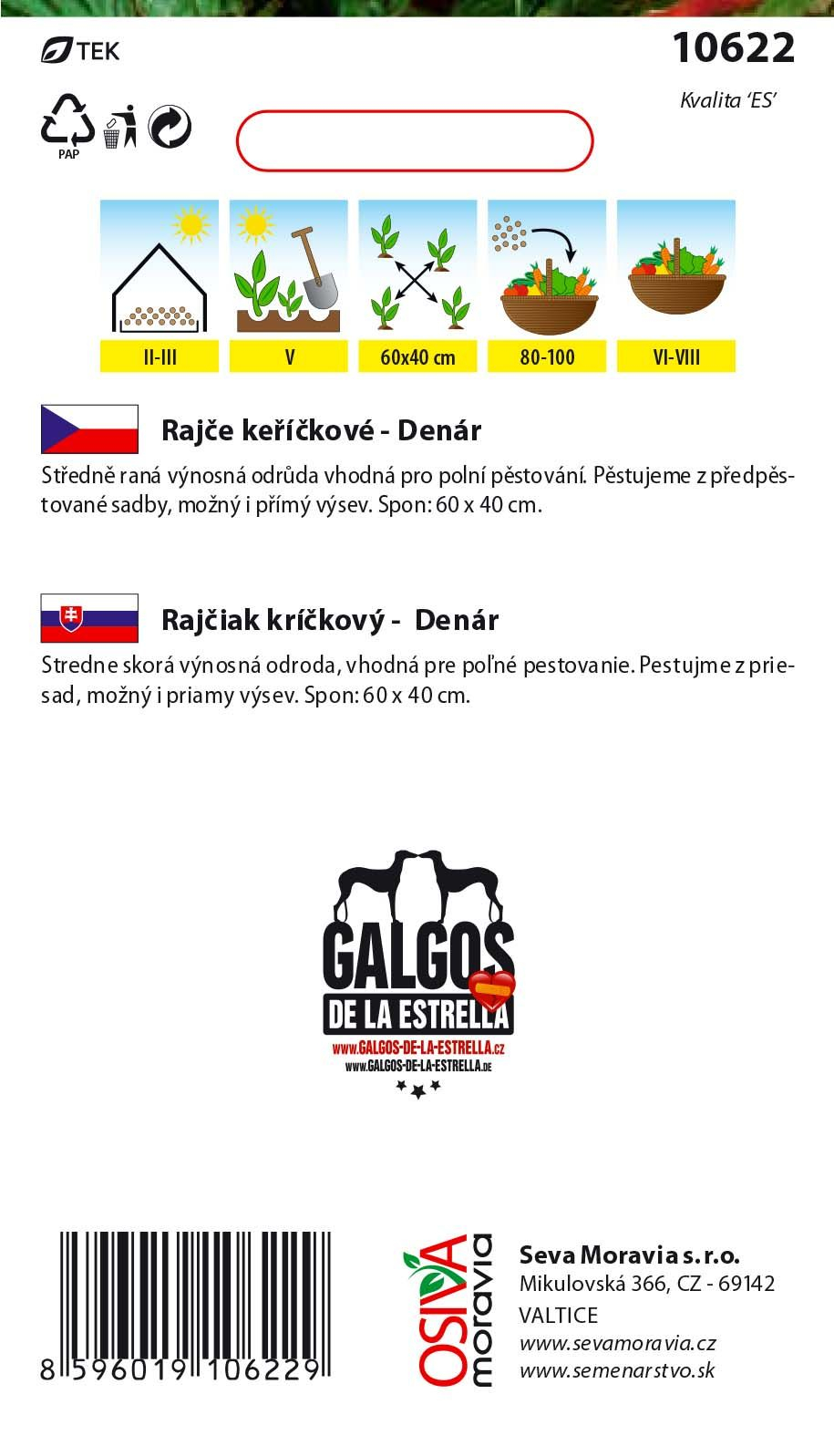 Rajče keříčkové DENÁR od Osivá Moravia je oblíbenou odrůdou díky svým vynikajícím chuťovým vlastnostem a vysoké produktivitě. Tato odrůda produkuje středně velké, pevné plody s vynikajícím chuťovým profilem, které jsou vhodné pro přímou konzumaci i na zpracování. Semena rajčat Denár jsou ideální pro pěstování na zahradách, balkonech nebo ve sklenících, kde poskytují bohatou úrodu.