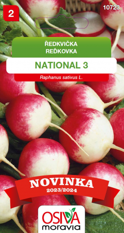 Ředkvička NATIONAL 3 je tradiční odrůda, která se vyznačuje rychlým růstem a vysokou odolností proti chorobám. Plody této odrůdy jsou kulaté, s jemnou pikantní chutí a červeno-bílou barvou. Jsou ideální pro přímou konzumaci i přípravu různých salátů. Tato odrůda je vhodná pro pěstování v různých klimatických podmínkách.