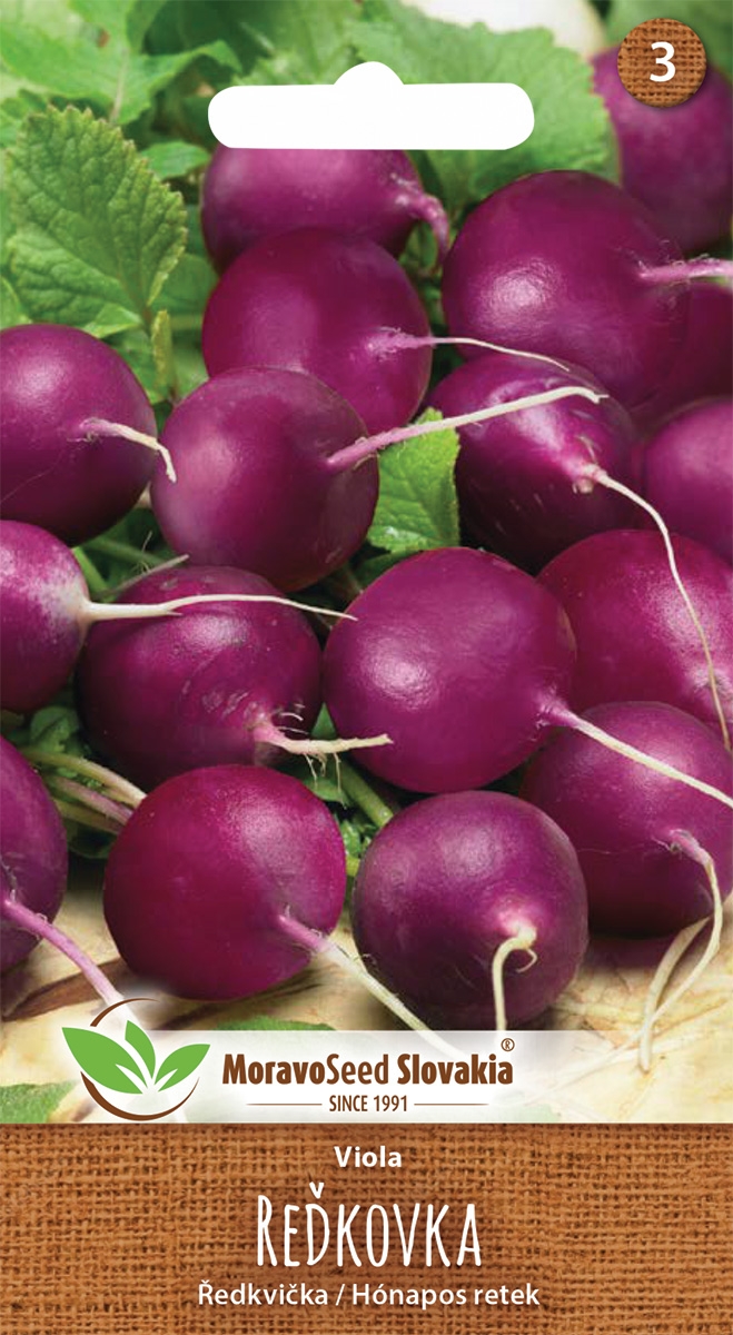 Fialová ředkvička Viola je vhodná pro pěstitele, kteří chtějí pěstovat chutné a zdravé ředkvičky po celý rok. Rostlina je středně vysoká, dosahuje výšky 20 až 30 cm. Bulvičky jsou kulovité, s fialovou slupkou a bílou dužinou. Mají jemnou chuť a jsou šťavnaté. Ředkvička je odolná vůči vybíhání do květů, praskání a houbovatění dužiny. Je vhodná pro přímou konzumaci i zpracování do salátů a dalších pokrmů. Vegetační doba je 36 - 40 dní od výsevu.