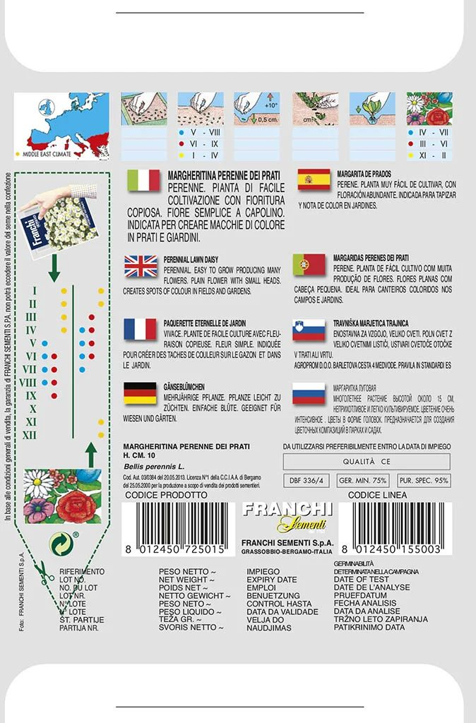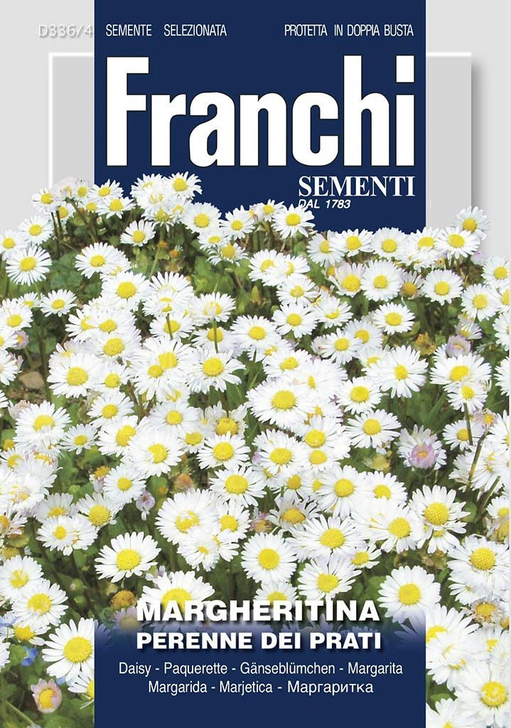 Tagy : sedmikráska, osivo, semena, sedmikráska obecná, trvalky, kvetoucí louka, pěstování květin, okrasná zahrada, nenáročné květiny, jarní květiny, trávník, výsev, květinový koberec, divoká zahrada, Franchi