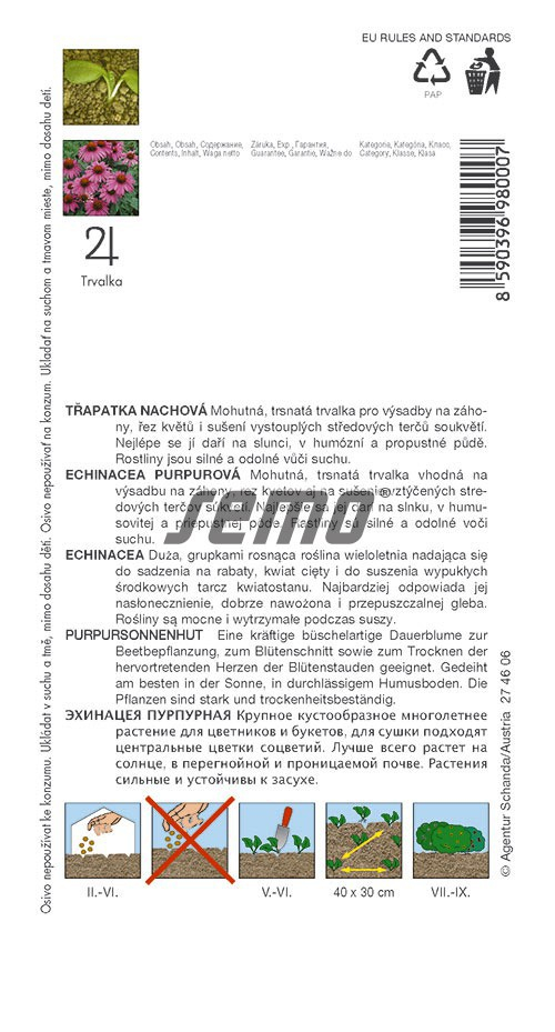 Tagy : třapatka, třapatka nachová, osivo, semena, trvalka, okrasná zahrada, léčivá rostlina, medonosná rostlina, karmínové květy, řezané květy, sušení květů, nenáročná trvalka, slunné stanoviště, letní kvetení, mrazuvzdorná trvalka