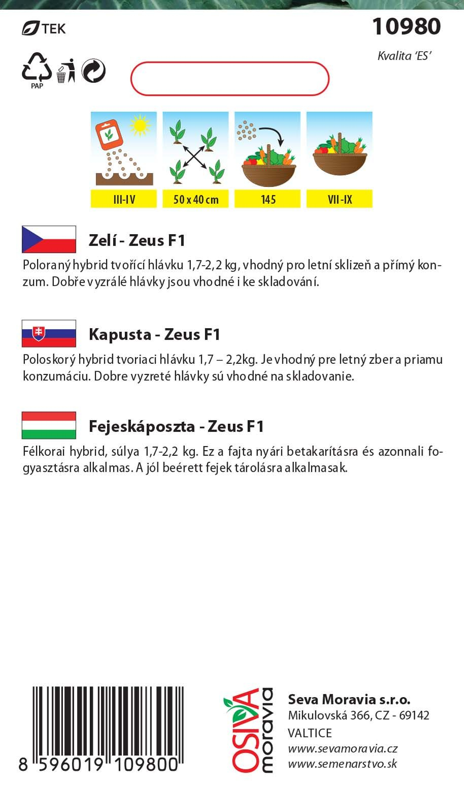 Zelí ZEUS F1 patří mezi moderní hybridy, které vynikají vysokým výnosem a vyrovnaností hlávek. Hlávky bývají pevné, dobře zaplněné a mají pravidelný tvar, což usnadňuje jejich kuchyňské zpracování. Hybridy typu F1 jsou šlechtěny na vyšší odolnost vůči chorobám a praskání, takže ztráty na záhoně jsou menší. Zeus F1 má velmi dobrou vnitřní strukturu, takže je vhodný k přímé konzumaci, kvašení i tepelné úpravě. Rostliny bývají silné a dokáží lepšie využiť živiny v půdě, čo je výhodou na bežných záhradných stanovištiach. Díky dobré skladovatelnosti poskytuje čerstvé zelí po značnou část zimního období.